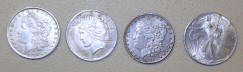 Bottom: Apparently fake U.S. silver dollars, including 1906-dated silver eagle!