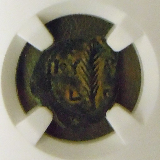 Left: Procurators of Judea ancient coin (A.D. 15-26), NGC VF.