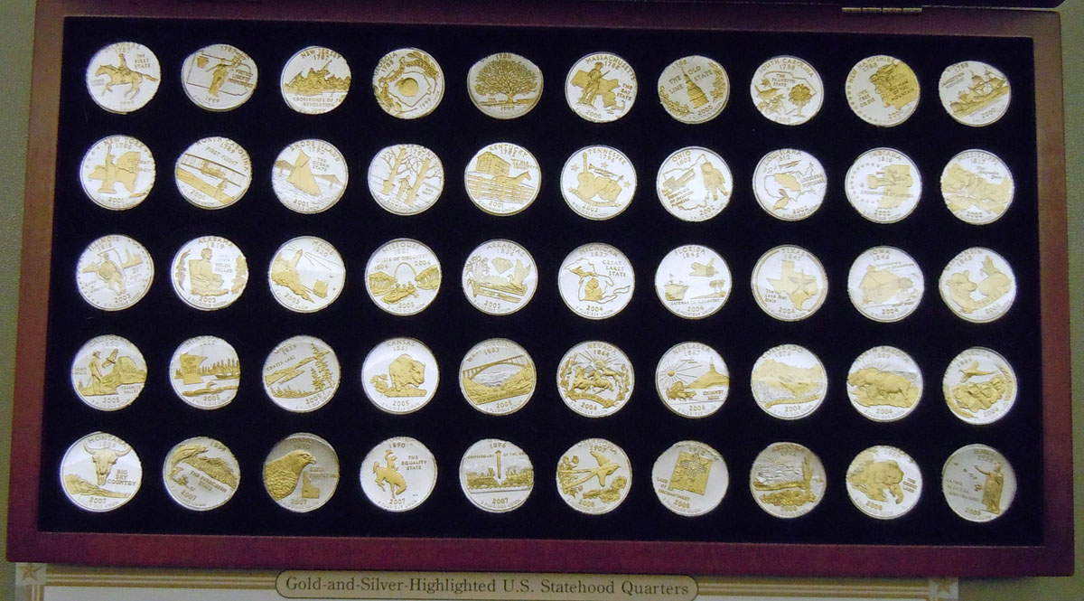 Center: Set of "Gold-and-Silver-Highlighted" U.S. Statehood Quarters.