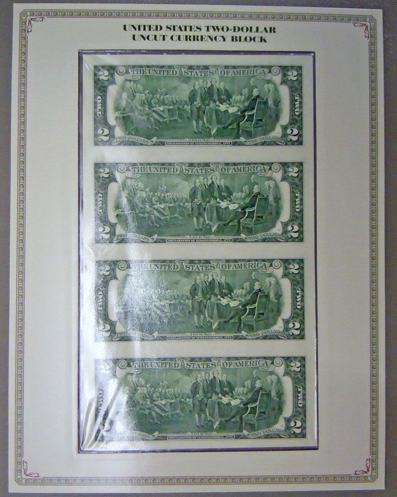 Right: Two-Dollar Uncut Currency Block, Series of 1976.
