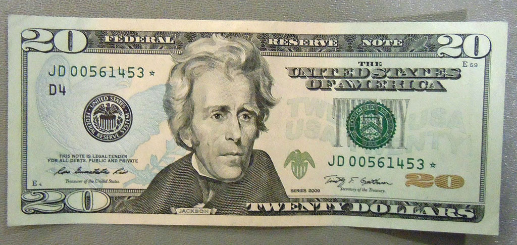 Right: 2009 $20 Federal Reserve "Star" Note with low serial number.