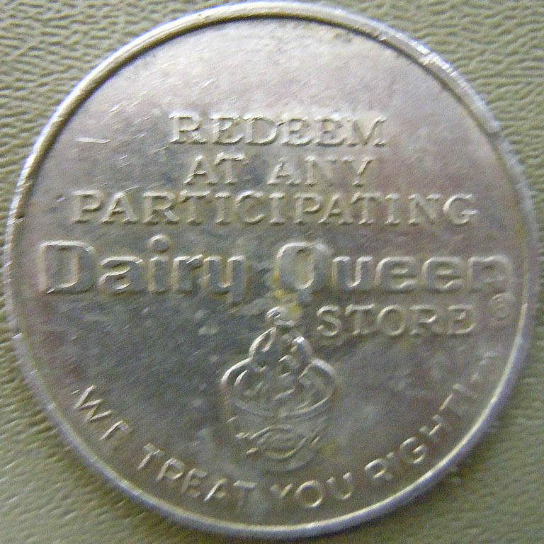Center: Dairy Queen free sundae (or 40 cents) Good For token.
