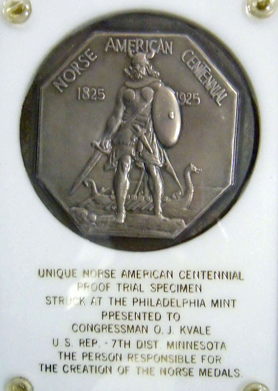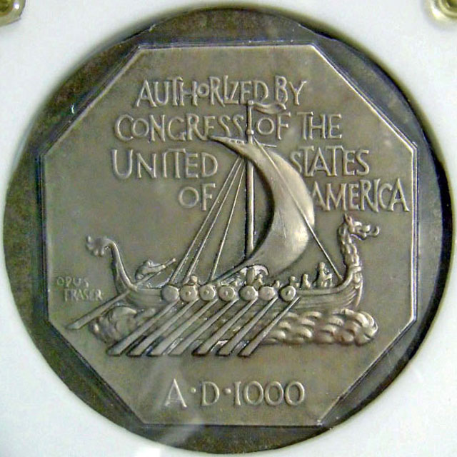 Center: 1925 Norse American medal unique trial specimen struck at Philadelphia Mint.