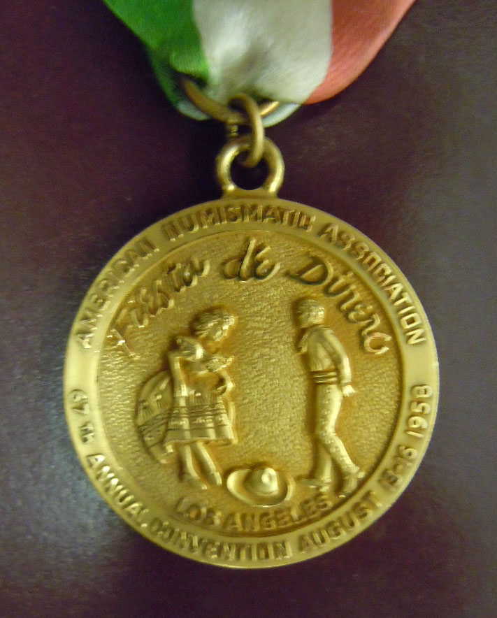 Left: ANA Convention medal/badge - 1958 Los Angeles ... Fiesta de Dinero.