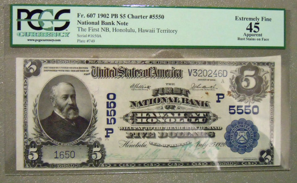 1902 National Bank Note: The First NB, Honolulu, Hawaii Territory (Charter #5550).