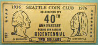 Center: 1976 Seattle Coin Club 40th anniversary leather souvenir $2 note.
