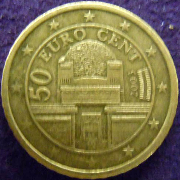 Right: 2003 50 Euro Cent coin.
