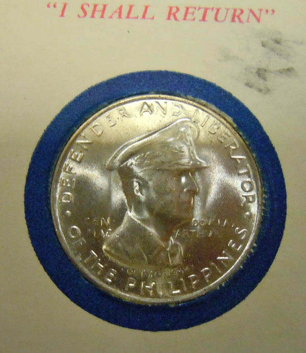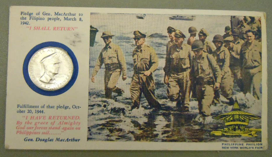 Left: General Douglas MacArthur medal and souvenir card from Philippine Pavilion