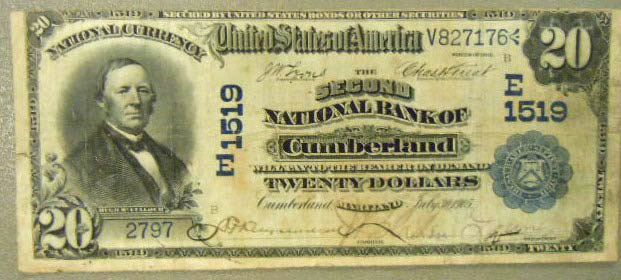 National Bank notes: 1905 Cumberland (MD), 1910 Keeseville (NY), 1913 Farmers NB of Beaver Falls (PA).