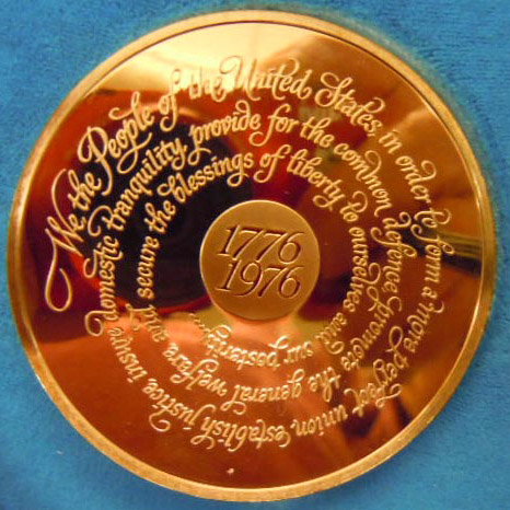 Center: 1776-1976 Franklin Mint bronze bicentennial medal with Washington, Lincoln and