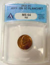 Center: Error coin, Jefferson nickel struck on cent planchet, certified by ANACS.