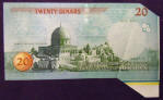 Right: 2002 Jordan 20 Dinars banknote with cutting error.