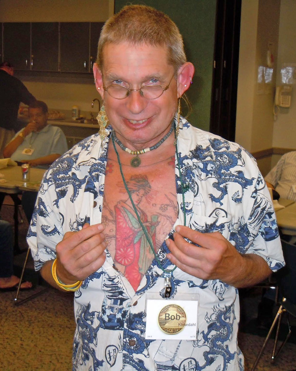 Longtime TLCC member Bob Kinsedahl shows one of his Oriental tatoos!