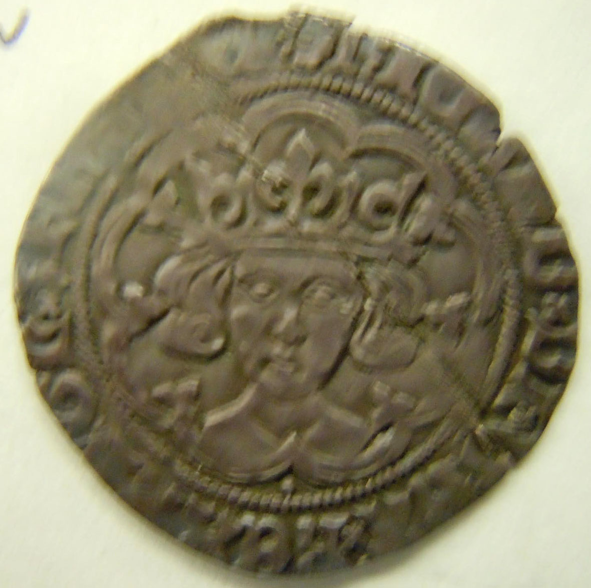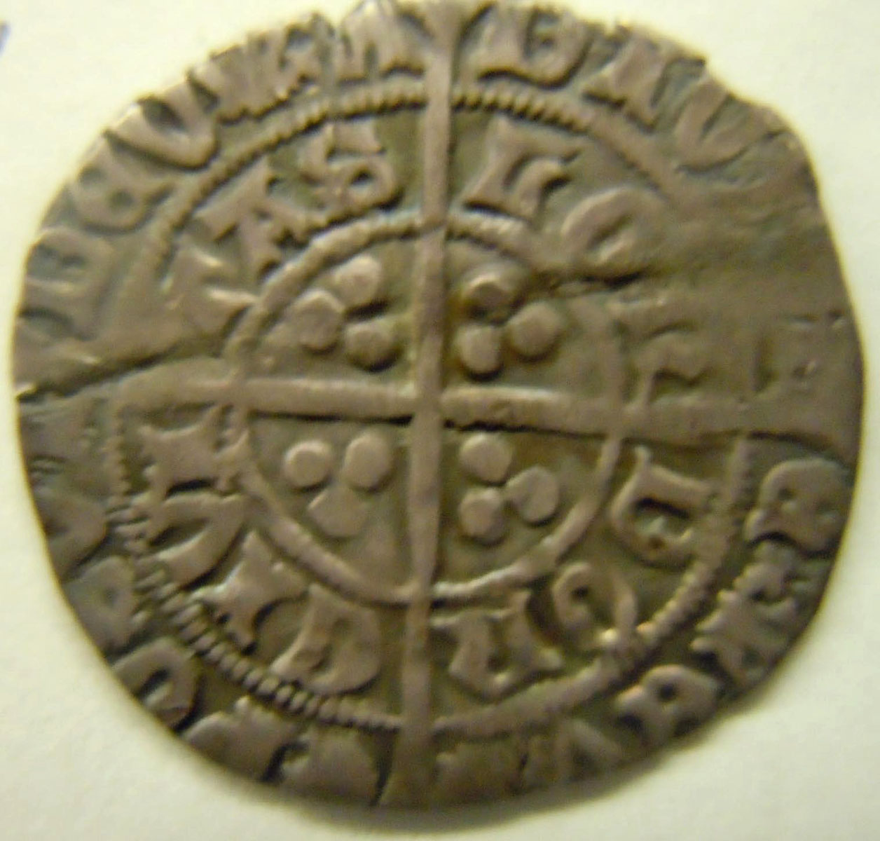Left: Richard III grout (British medieval coin). Center: 1980 Queen Mother British commemorative coin. Right: 1867 Victoria Florin (British coin, 2 shillings or 1/10 pound).