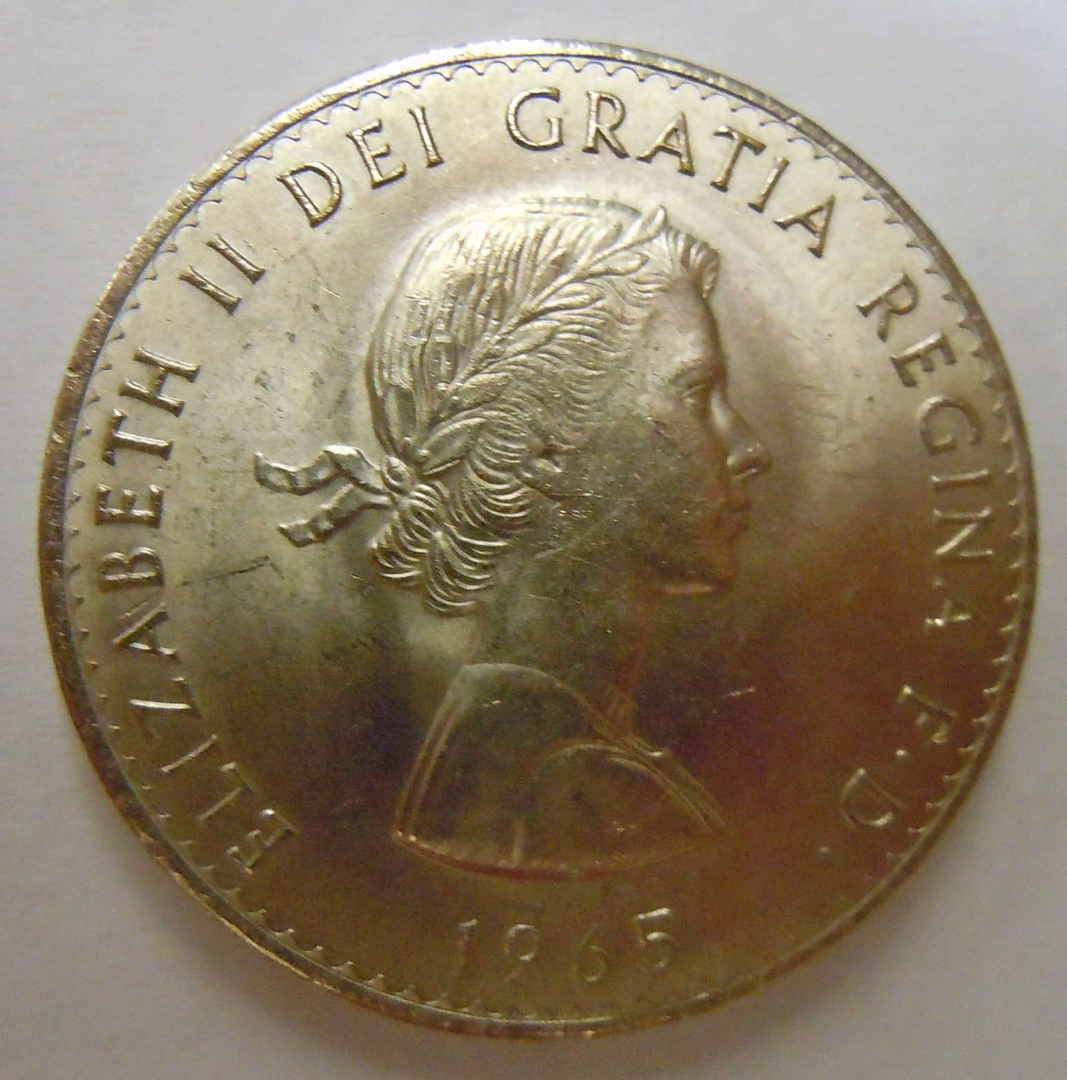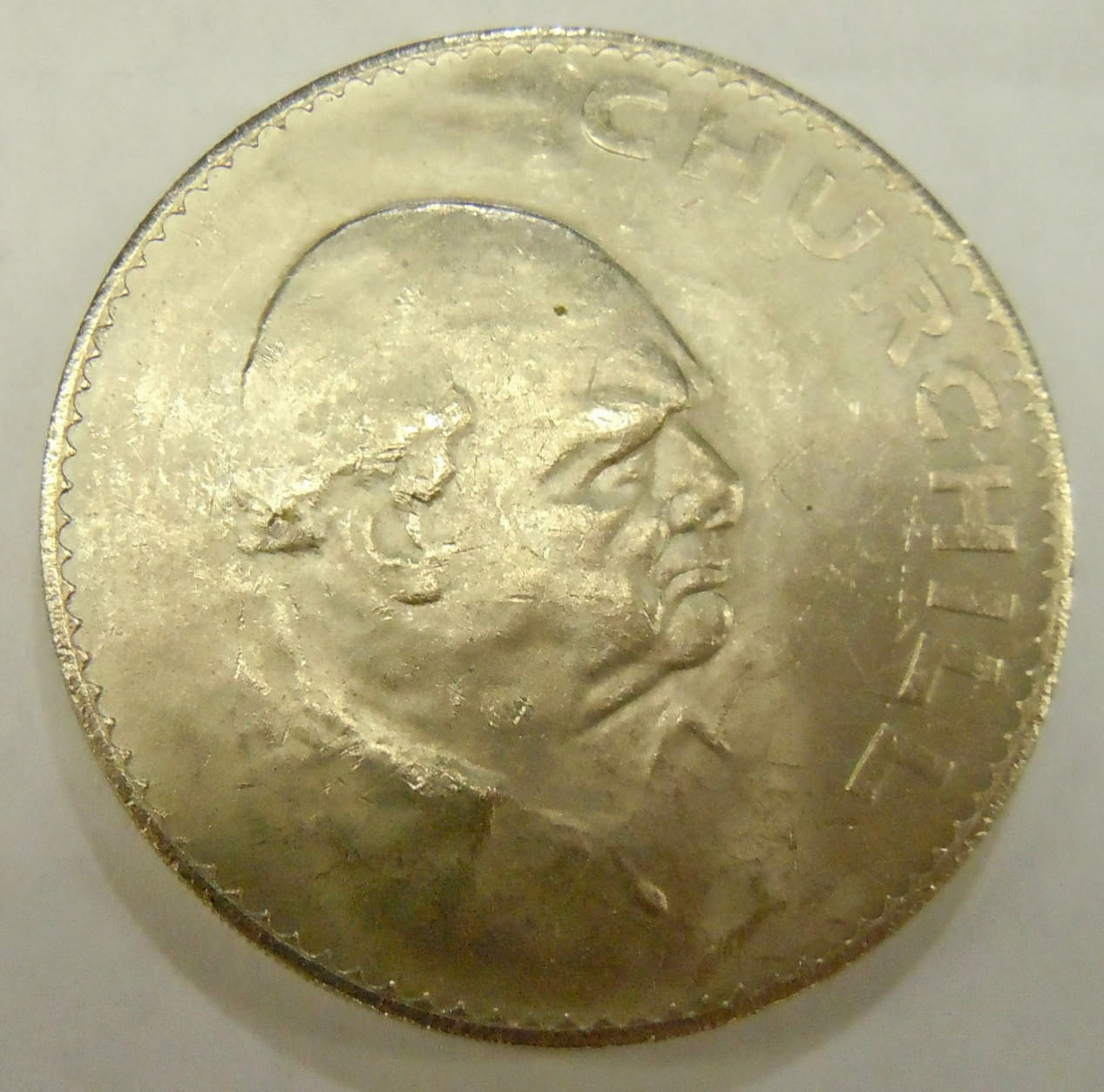 Center: 1965 United Kingdom (Great Britain) Churchill crown.