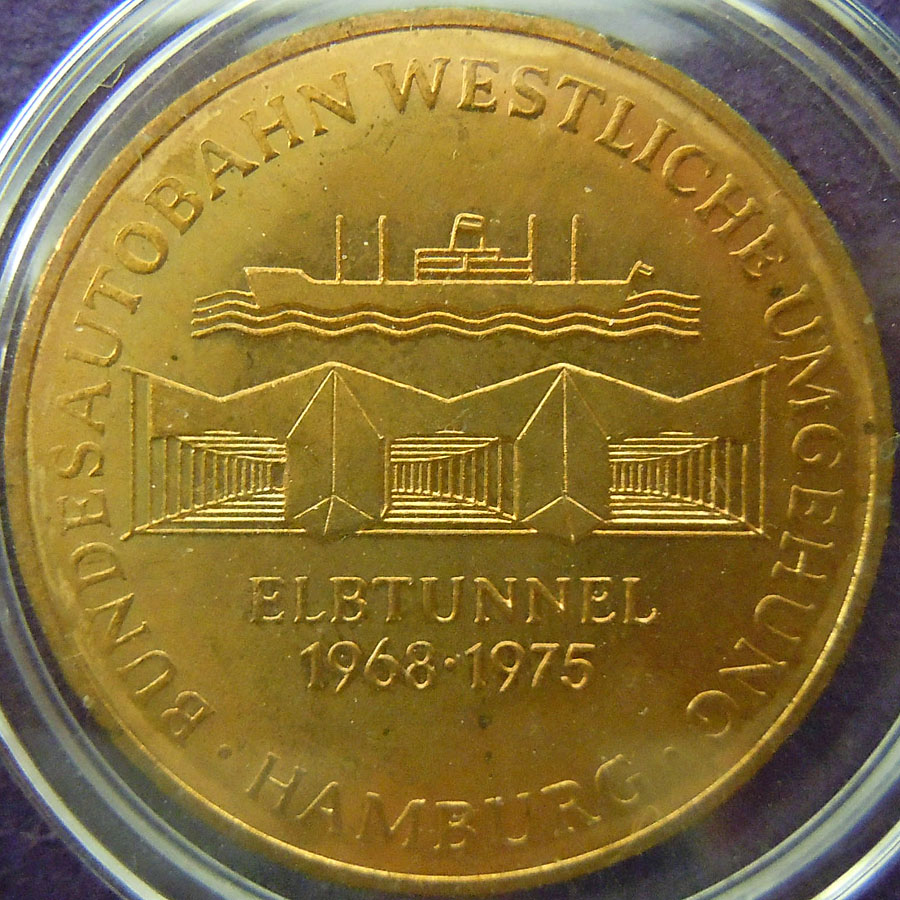 Elbe river crossing in northern Germany) tunnel opening commemorative medal.