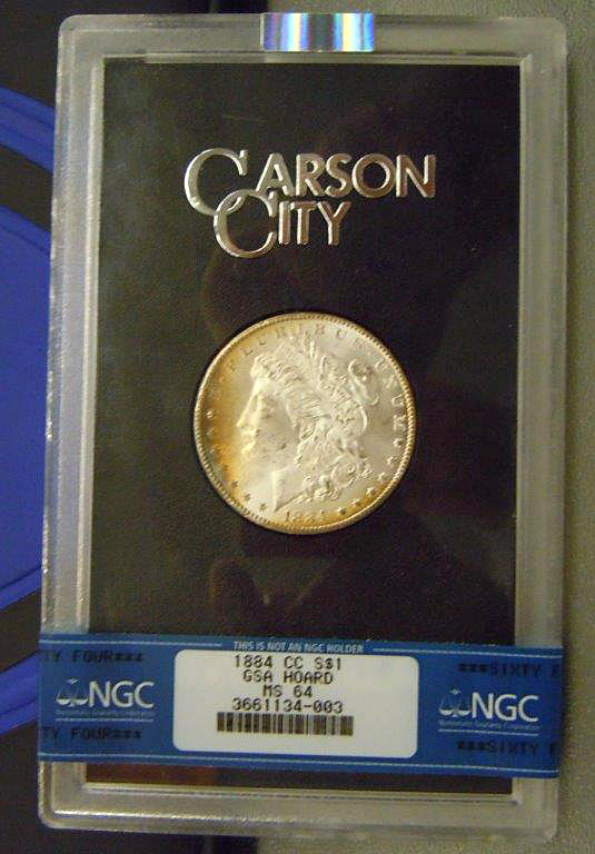 Left: 1884-CC Morgan Dollar certified in original GSA holder.