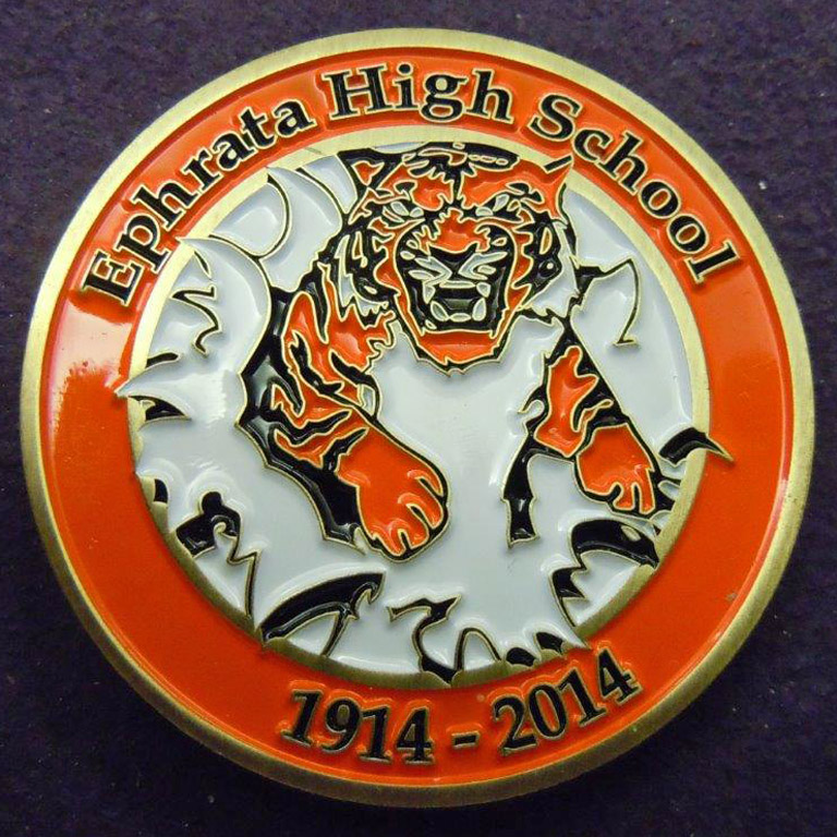 Right: Ephrata High School "Tigers" 100th anniversary commemorative "challenge coin."
