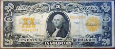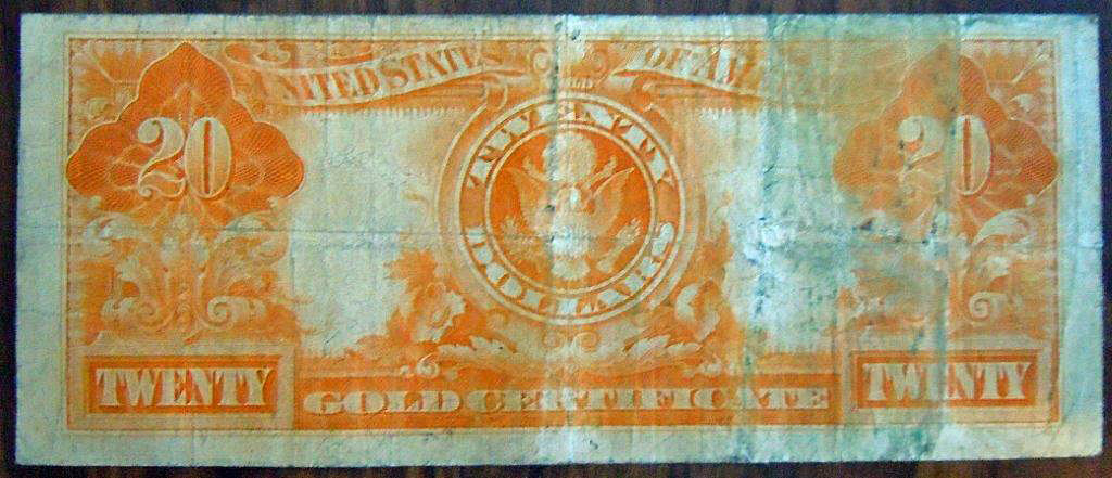 Top: 1922 $20 U.S. Gold Certificate. Bottom: 2009 $1 bill with palindrome serial number; also with six sevens!