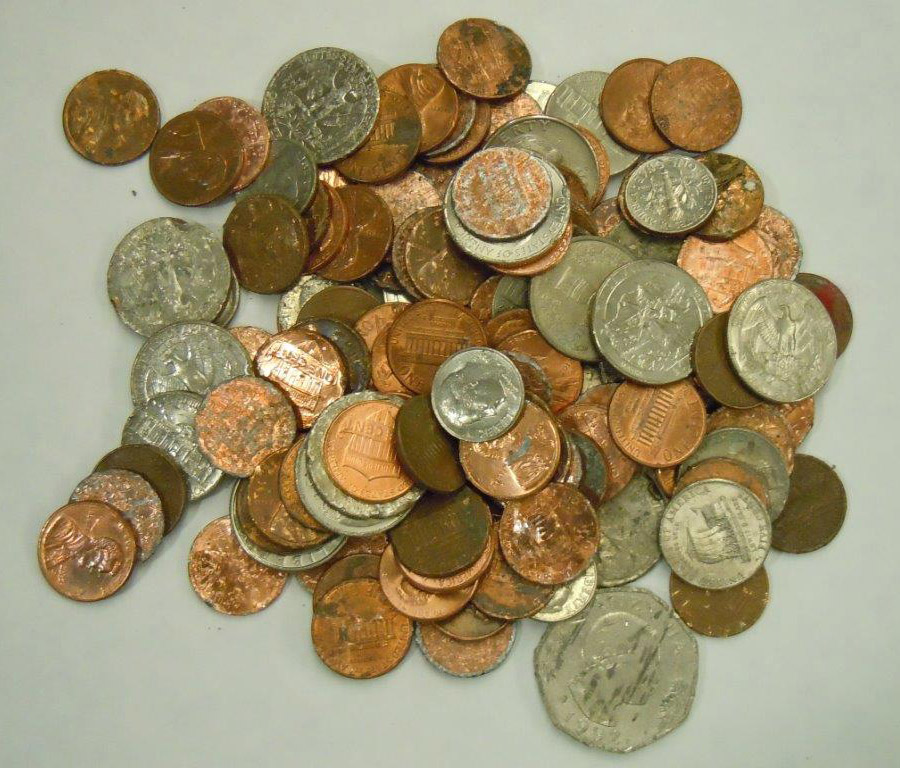 Left: 1870 Liberty Seated Half Dollar in poor damaged condition. Right: Mike's "Roadkill" collection!