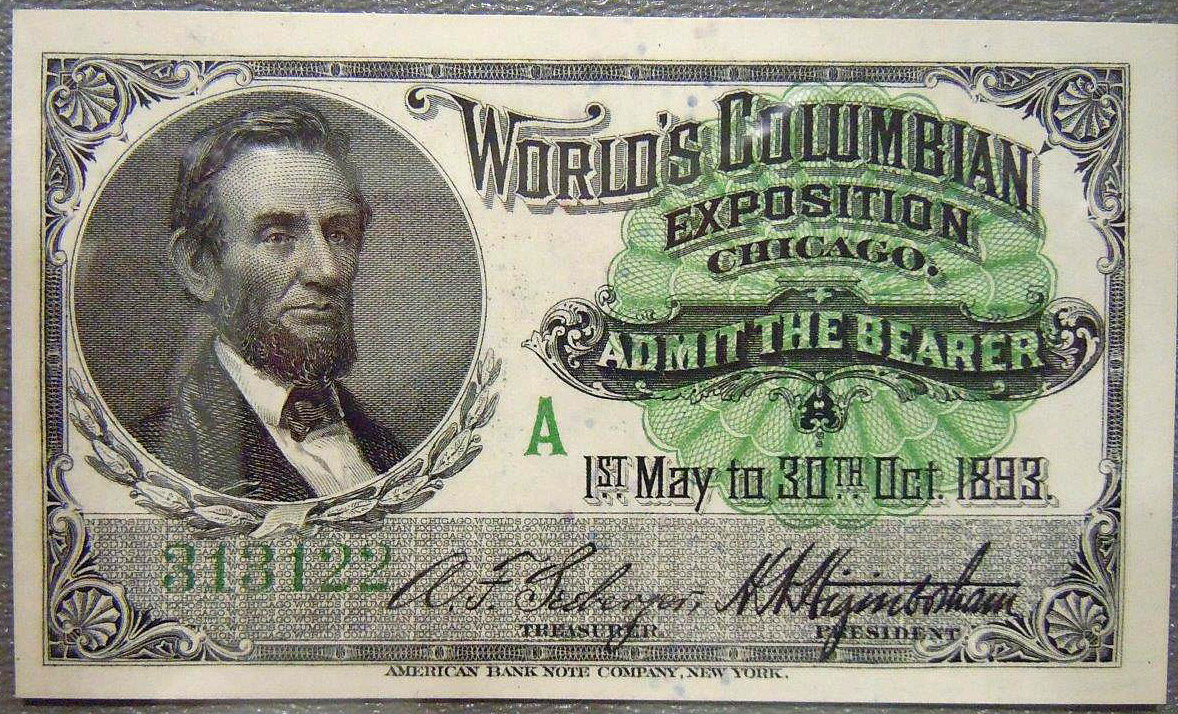 Two 1893 admission tickets to the World's Columbian Exposition in Chicago.