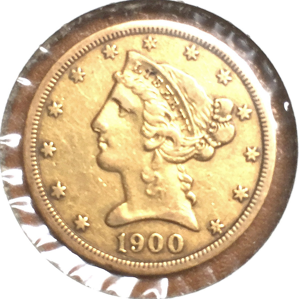 Left: 1900-S Half Eagle ($5 gold coin). Purchased to celebrate the owner's