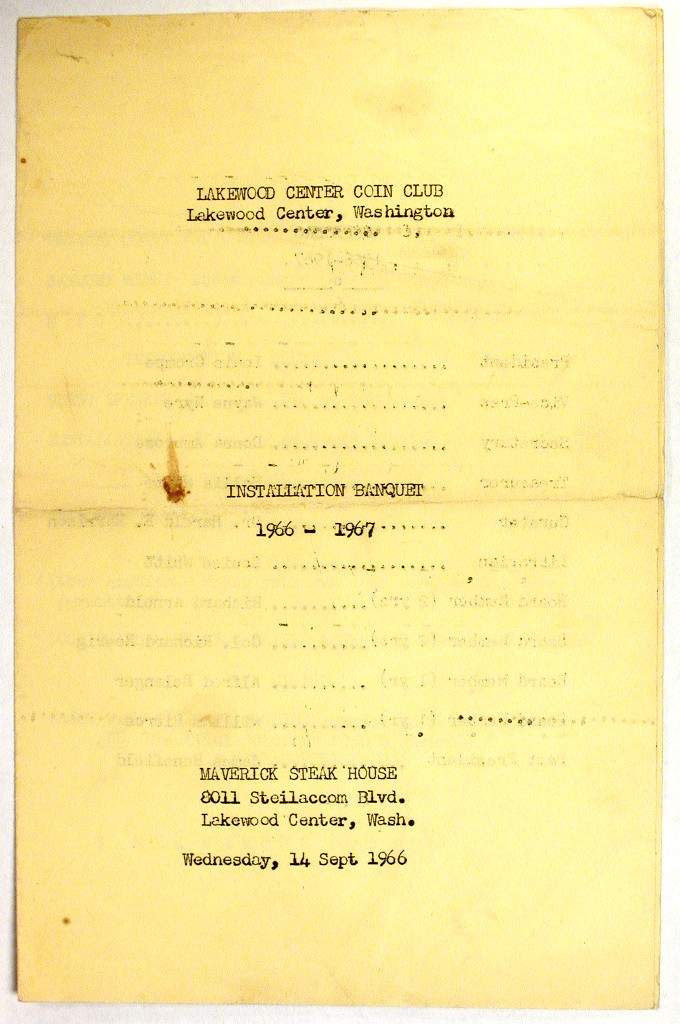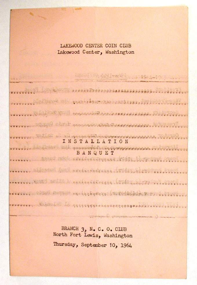 | For consistency and to allow for future discoveries, pre-merger banquet programs from year 19yy are numbered Pyy-1 for the Tacoma Coin Club and Pyy-2 for the Lakewood Center Coin Club. | |||