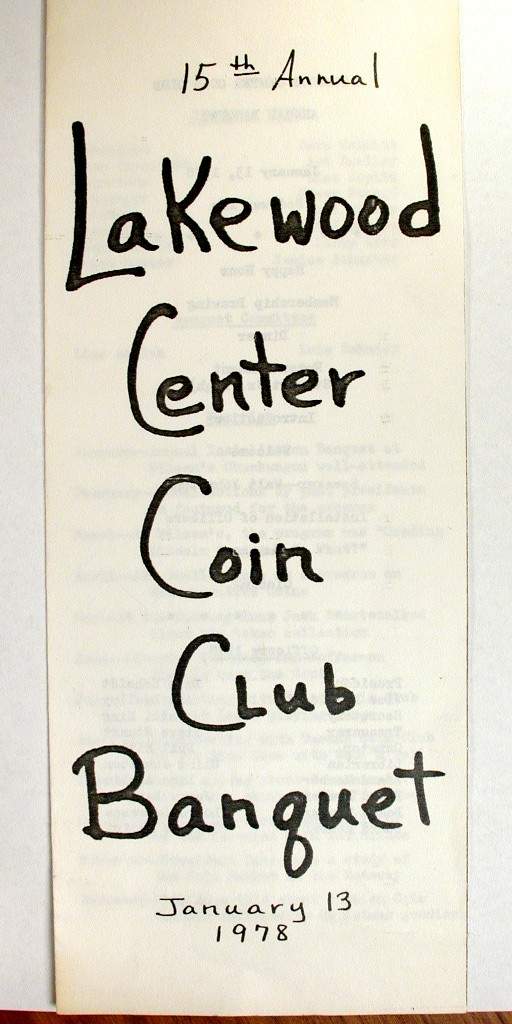 The TLCC Memorabilia CatalogPage P2 - Lakewood Center Coin Club Banquet Programs (pre-merger) -Index | Previous Page| Next Page Click on the thumbnail images for a larger version. |