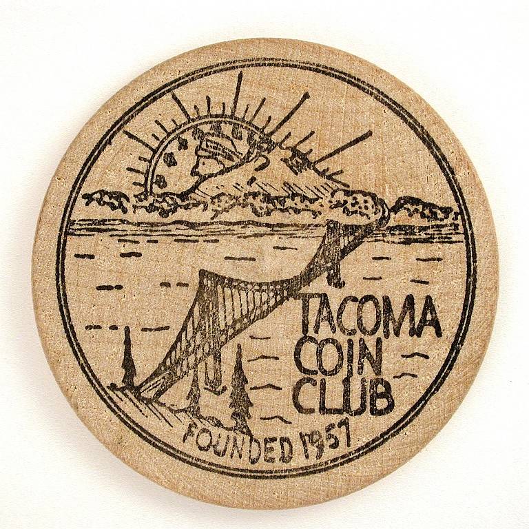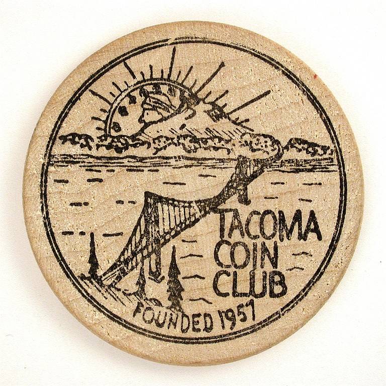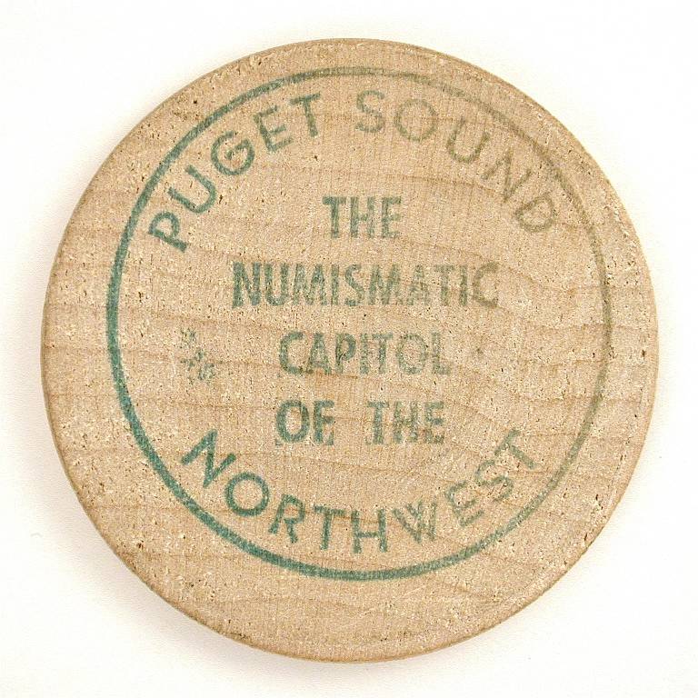 S59-1a wooden nickel, 38 mm Green obverse, black reverse - 2 known 300 of these were made in various colors and handed out at the Portland, Oregon ANA Anniversary Convention. |
