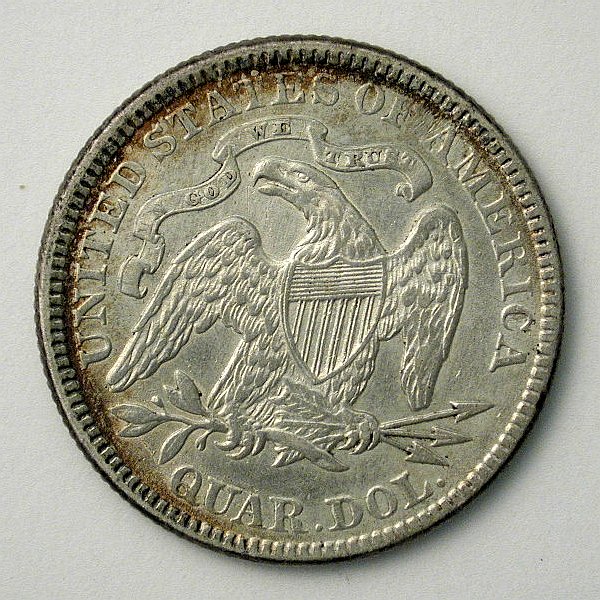 Left: 1876 Quarter Dollar, formerly in club collection. Right: 1894 Morgan Dollar, ICG AU-58.