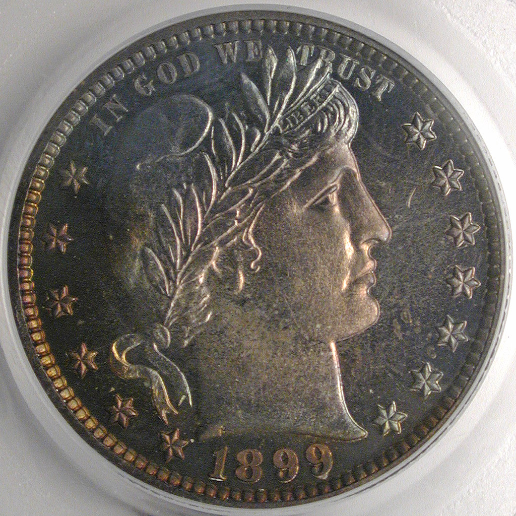 Left: 1898 Barber Dime, NGC PF62. Right: 1899 Barber Quarter, PCGS PR62.