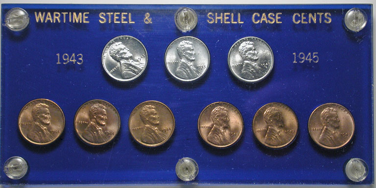 Left: Set of Wartime steel & shell case Lincoln Cents.