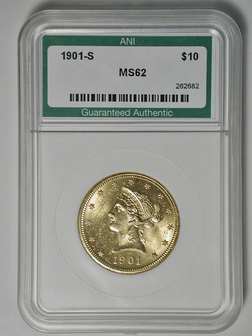 Left: 1901-S $10 Gold Coin (Eagle), ANI MS-62.