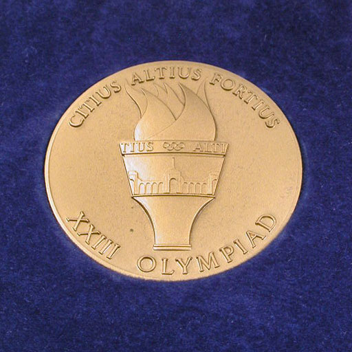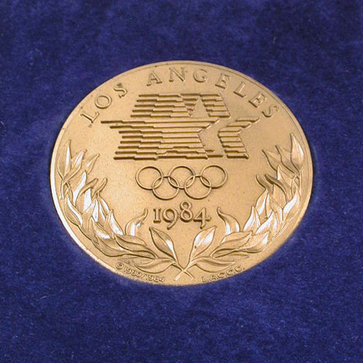Left: 1984 Los Angeles Olympic Games athletes/officials participation medal.