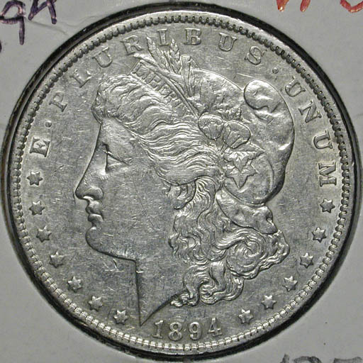 Left: 1893-S Morgan Dollar. Right: 1894 Morgan Dollar.