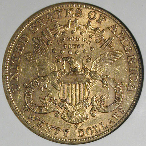 Left: 1886-S Half Eagle ($5 gold), NCS GSA Genuine. Right: 1905-S Double Eagle ($20 gold), NGC GSA XF-45.