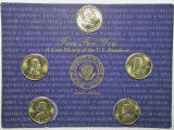 Left: 1984 Harry S. Truman 100th birth anniversary silver medal. Right: Set of brass medallions commemorating the first five U.S. Presidents.