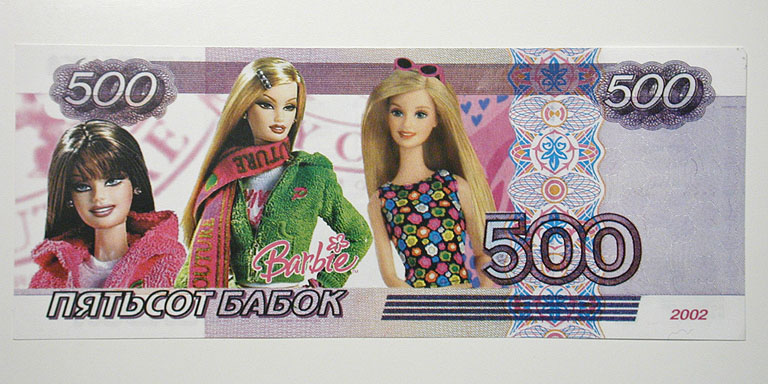 Privately issued Russian "Barbie" note to protest economic conditions.