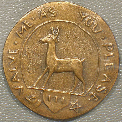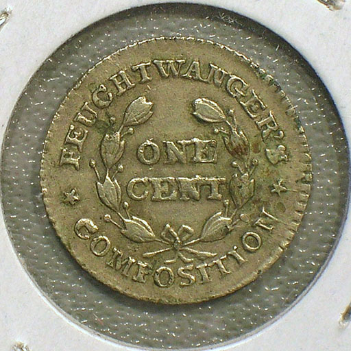 Left: 1837 Feuchtwanger Cent pattern. Right: Medal issued for 1927 ANA convention in Hartford.