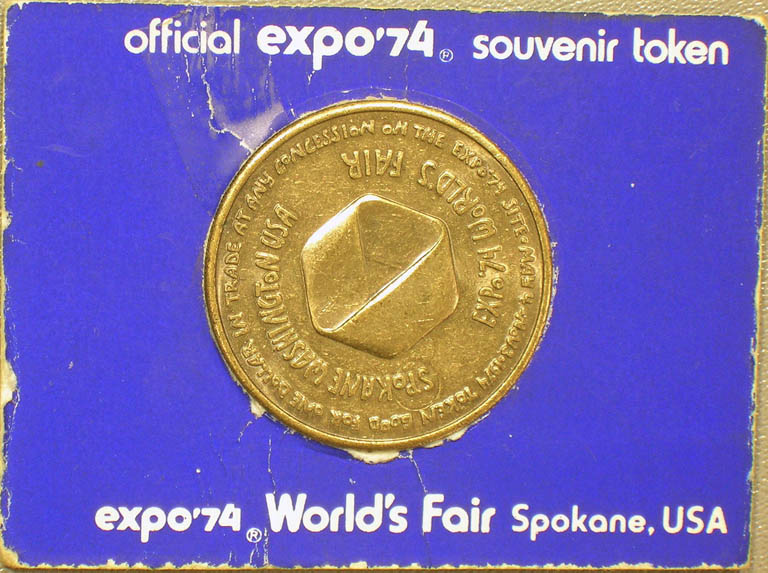 Top: Official "souvenir token" for Expo '74 World's Fair in Spokane. Bottom: Bank of Al-Maghrib 20 dirhams banknote.