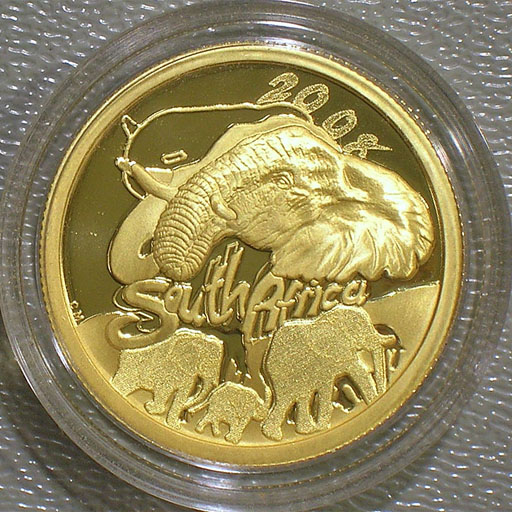 Left: 2000 Lincoln Cent "Extra Beard" variety. Center/Right: 2008 South Africa 50 rand gold coin depicting elephants.