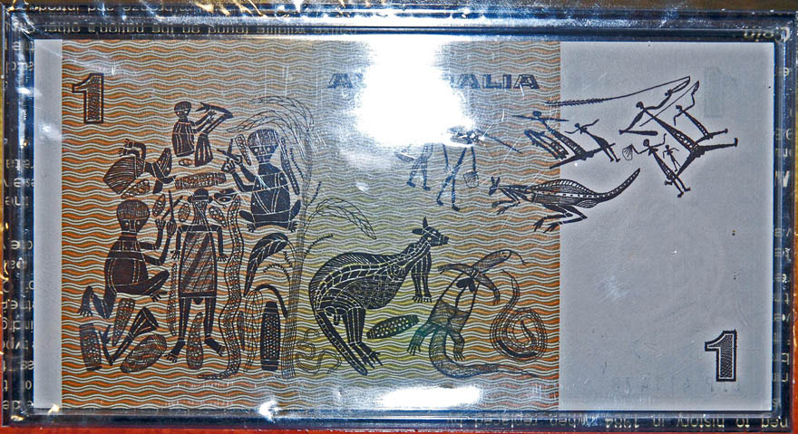 Left: Australian $1 commemorative banknote (1980's?)