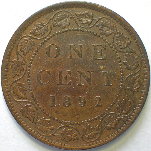 Right: 1892 Canadian large cent, with obverse of 1893.