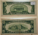 Right: $5 and $10 Federal Reserve Notes with errors (fold and improper cut).