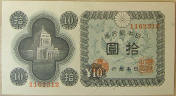 Bottom: Japan 10 yen banknote, 1946-1951 era.