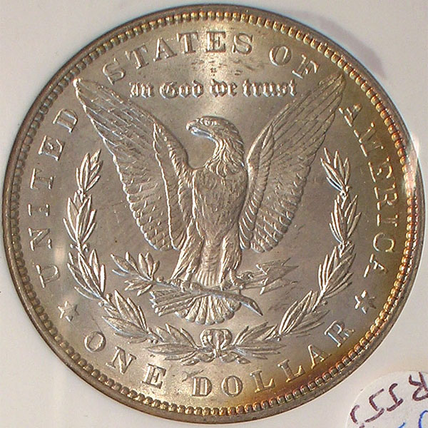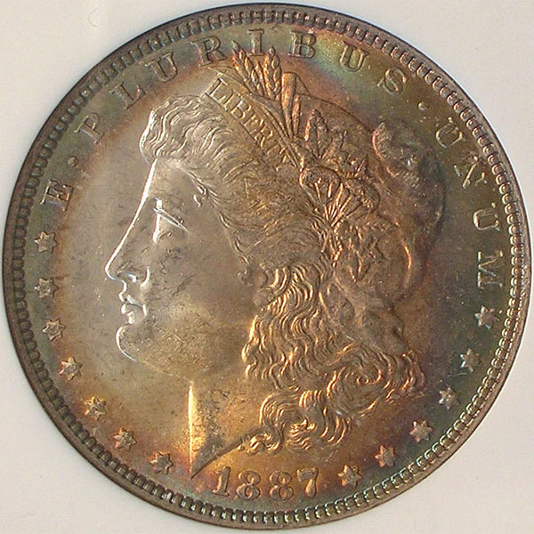 Right: 1887 Morgan Dollar, NGC MS 64 (and also toned).