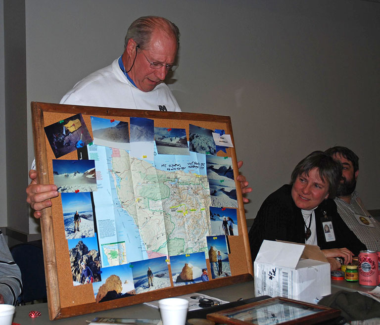 Left: "Mac" talking about his hiking experiences on the Olympic peninsula.