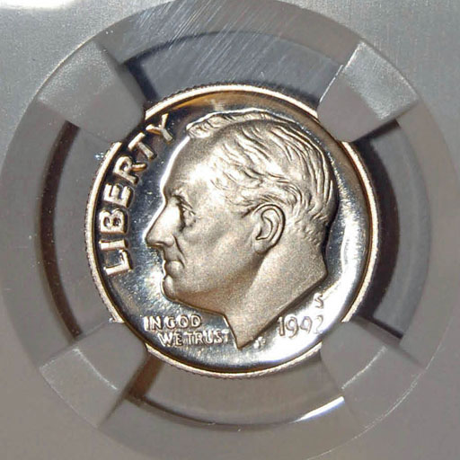 Right center: 1992-S clad dime, NGC PF 70 Ultra Cameo.