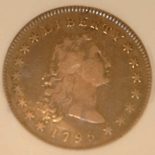 Left: 1795 Flowing Hair Silver Dollar, BB-18 (silver plugged), NGC VF35.