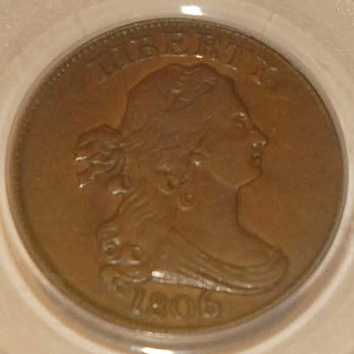 Left Center: 1806 Half Cent (Large 6), PCGS XF40 with CAC sticker.